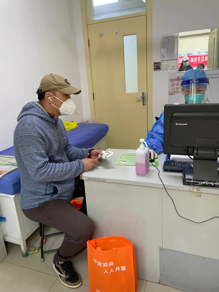 一次,在维持核酸检测现场秩序的工作中,他看到一名独自坐着电动轮椅的老大爷排在队尾,并听到大爷抱怨说队伍太长想要回家时,他赶紧跑上前去说:“大爷您别急,我帮您申请个快速通道,马上咱们就能检测完”。他推着大爷到核酸检测登记的位置说明事情缘由,临时为大爷安排了快速通道进行检测,前后不到4分钟就帮老大爷完成了核酸检测。