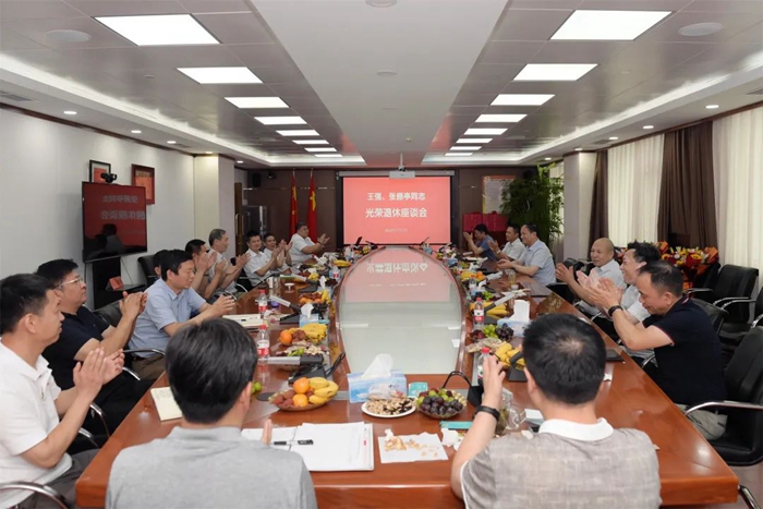 7月12日,北京化工集团党委召开座谈会,欢送光荣退休的房地产公司原党总支书记、董事长王强和华腾东光公司原党总支副书记、总经理张振亭。
